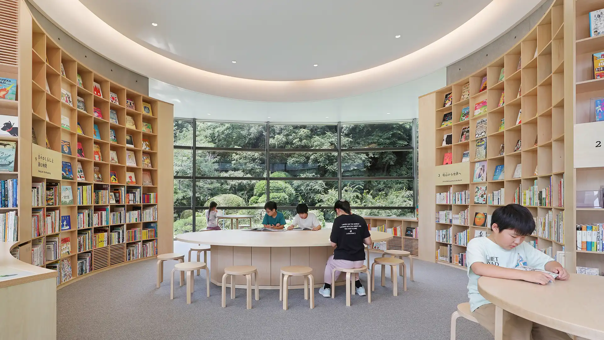 「こども本の森 松山」は、坂の上の雲ミュージアムを設計した安藤忠雄さんから未来を担うこどもたちに贈られた、本に親しんでもらう施設です。